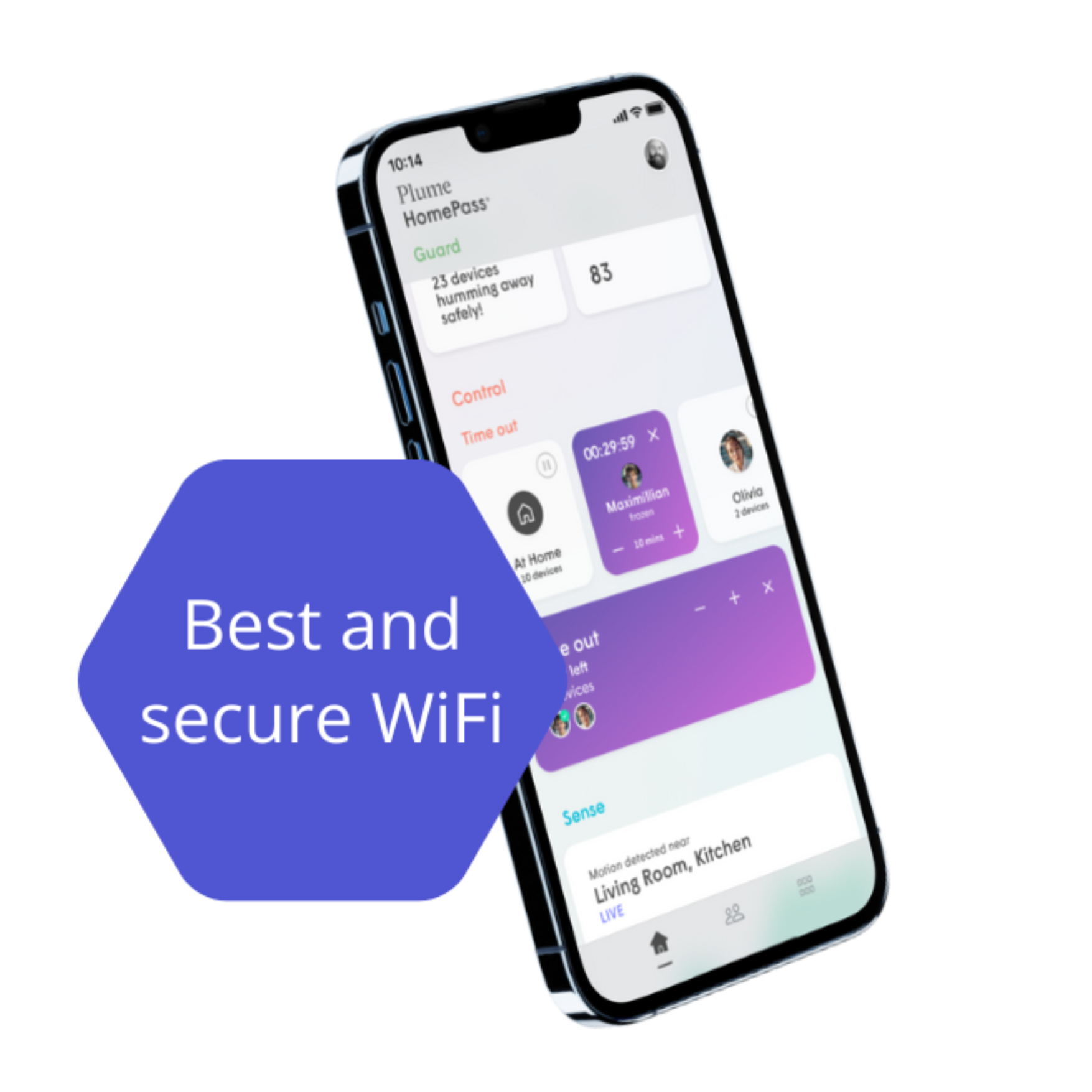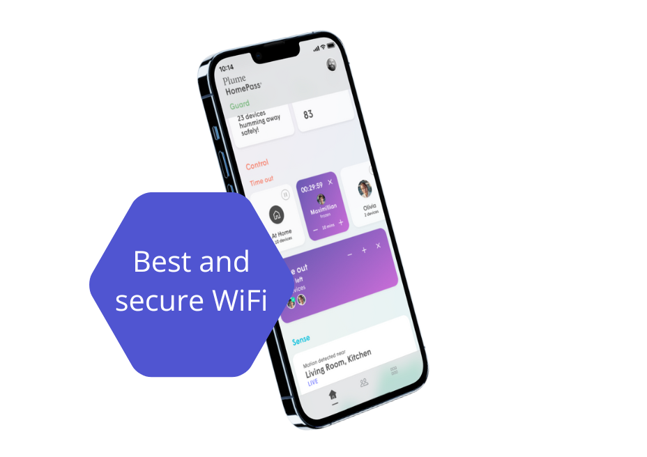 Plume HomePass® fournit un réseau WiFi intelligent et sécurisé, contrôlé par IA et avec optimisation «mesh» automatique, constitué d’un équipement hardware (SuperPods) et d’un abonnement obligatoire à CHF 5.90 par mois indépendamment du nombre de SuperPods. Avec votre abonnement Plume HomePass®, vous bénéficiez des meilleures performances WiFi et de fonctionnalités telles que la cybersécurité permanente et la protection des enfants.